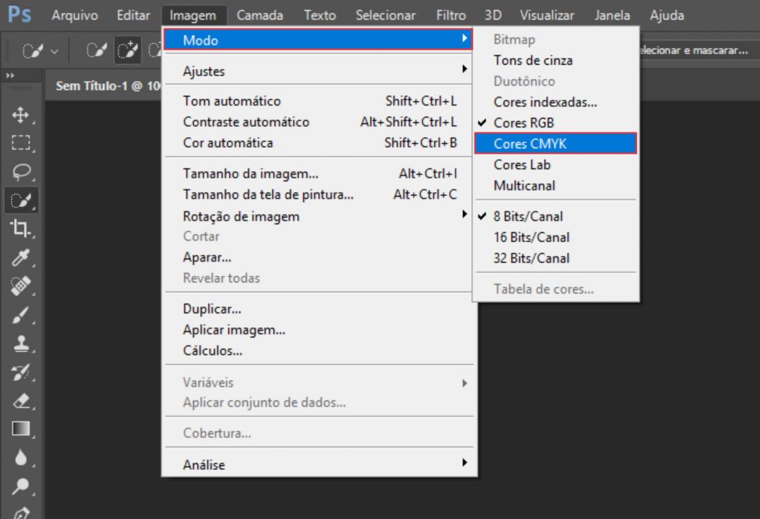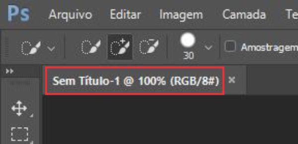 Também é possível alterar o modo de cor depois que seu arquivo estiver aberto. Primeiro confira qual modo de cor você está usando. No exemplo abaixo estamos usando em RGB.
