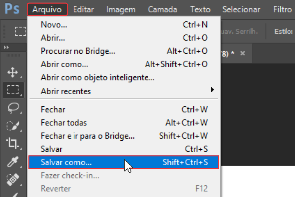 Vá até o menu "File" ou "Arquivo" e selecione "Save As" ou "Salvar como".
