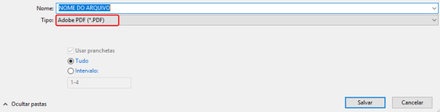 Na nova Janela, em Tipo, selecione Adobe PDF e clique em Salvar.